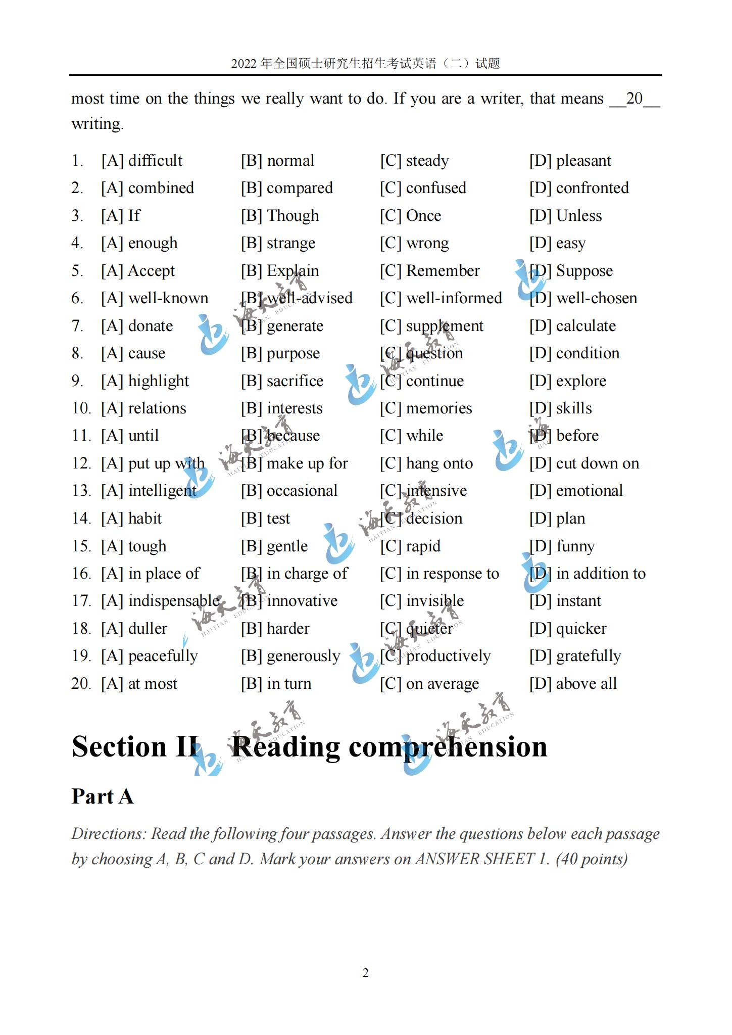 22考研英语考试结束,海天考研整理发布【2022考研真题解析专题】,可以查看22考研英语真题,答案。更多22考研政治真题及答案、22考研数学一真题及答案、22考研数学二真题及答案、22考研数学三真题及答案,请持续关注【2022考研真题解析专题】!
